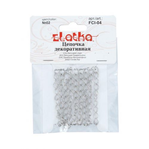 Декоративная цепочка ТМ "Zlatka" - универсальное и функциональное изделие. Она может использоваться как в качестве вспомогательных элементов при создании украшений и аксессуаров, так и в качестве элемента декора для одежды, сумок, обуви и т.д.