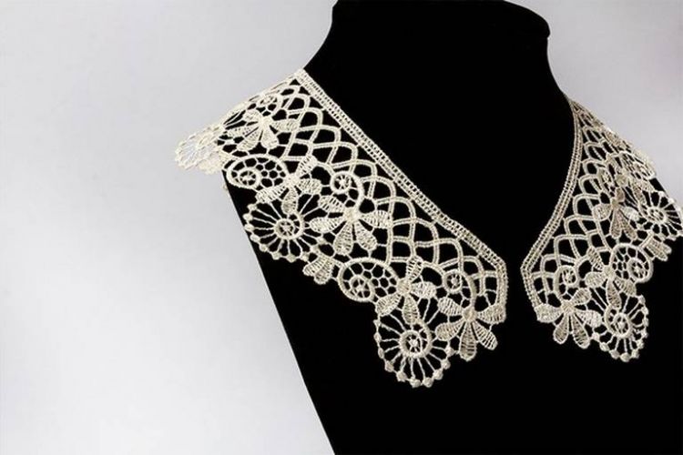 Воротник из гипюра состоит из выпуклых кружевных элементов, соединенных сетчатыми "связками". Воротник имеет ажурное плетение, что придает ему особый изыск. Применяется для отделки школьной формы, женских платьев, а также можно использовать в виде декоративных вставок: в одежде, текстильных изделий и т.д.