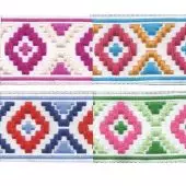 Жаккардовые ленты представляют собой текстильное полотно, изготовленное по специальной технологии, основанной на вплетении рисунка в плотную ткань. Подходит для нанесения любого рельефного узора с подробной детализацией изображения, одновременное использование до 6 цветов нитей, не считая основного фона.