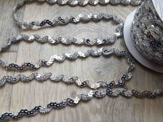 Тесьма "Gamma" металлизированная с пайетками (MTR-10) 10 мм, цвет под серебро