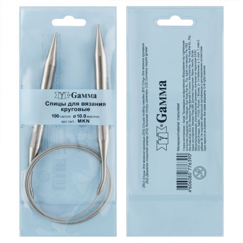 Спицы круговые "GAMMA" арт. MKN сделаны из стали AISI 201 которая обладает высокой прочностью. При их изготовлении применяются новейшие технологии, благодаря чему удается получить сбалансированный химический состав. Он в свою очередь повышает стойкость к коррозии. Леска состоит из металлической скрученной проволоки, с пластиковой обмоткой. Соединение лески и спицы гладкое. Спицы имеют покрытие, благодаря, которому петли хорошо скользят по поверхности спиц. Спицы прочные, легкие, гладкие, удобные в использовании. Кончики спиц закругленные, ровные. С помощью круговых спиц выполняют детали, не имеющие швов. Так как вес изделия лучше распределяется именно на таких спицах, то ими очень удобно работать.